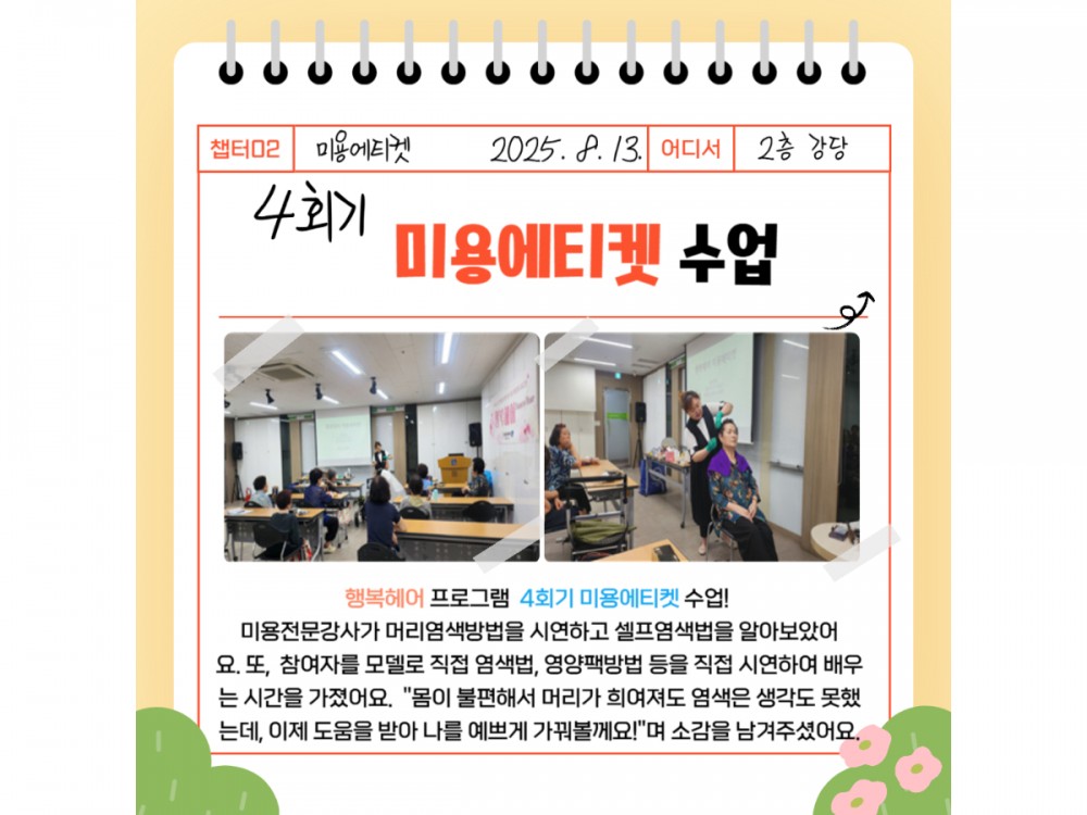 행복헤어 8월활동 페이지 정보 작성자 시설운영팀 작성일25-08-22 22:04 조회139회 댓글0건 관련링크 이전글 다음글 목록 본문 #폭염 #날씨 #태픙* 이 디자인은 미리캔버스에서 작업되었습니다.(https://www.miricanvas.com)* 글꼴 출처 : https://bit.ly/4aRZ60P 댓글목록 등록된 댓글이 없습니다. 이전글 다음글 목록
