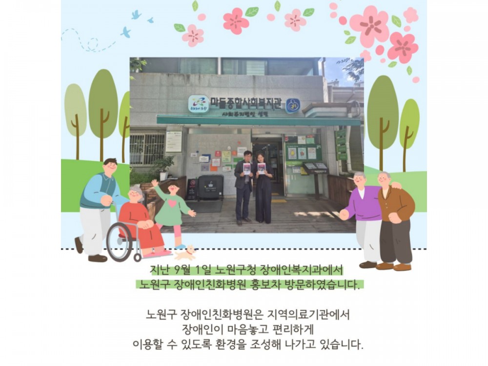 9월 노원구 장애인복지과 장애인친화병원 홍보방문 페이지 정보 작성자 시설운영팀 작성일25-09-05 18:52 조회114회 댓글0건 관련링크 이전글 다음글 목록 본문 #단풍 #추석 #명절* 이 디자인은 미리캔버스에서 작업되었습니다.(https://www.miricanvas.com) 댓글목록 등록된 댓글이 없습니다. 이전글 다음글 목록
