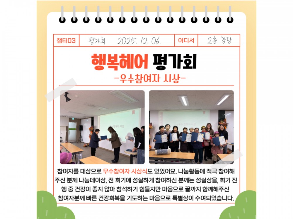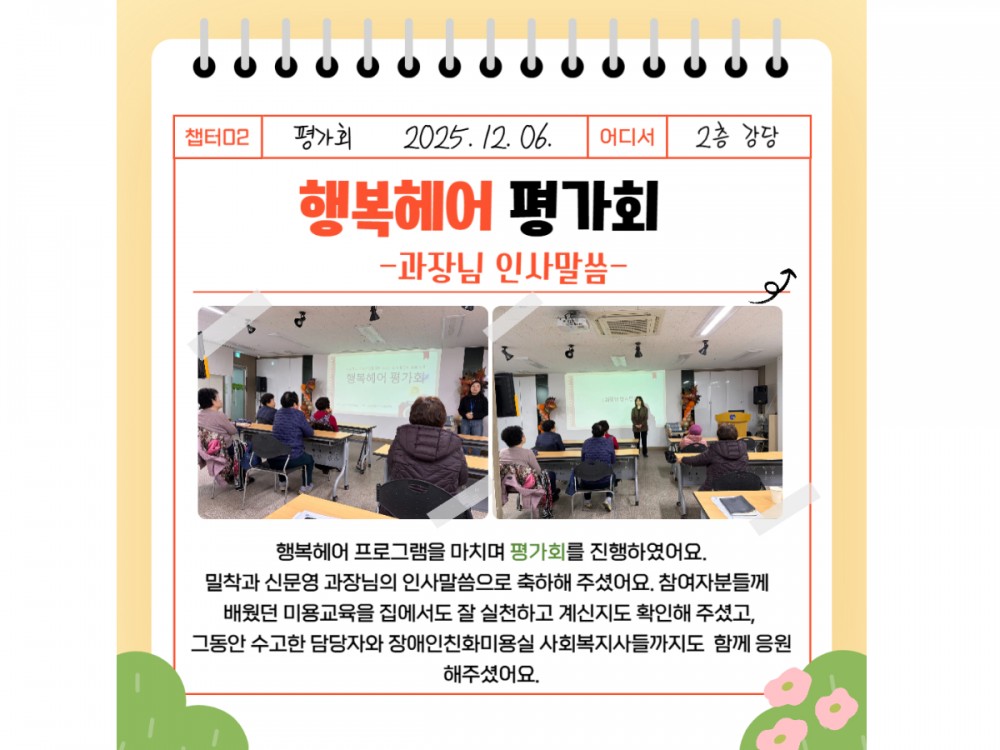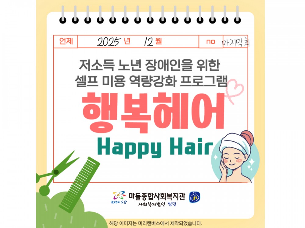 행복헤어 12월 활동 페이지 정보 작성자 시설운영팀 작성일25-12-06 22:39 조회397회 댓글0건 관련링크 이전글 다음글 목록 본문 #크리스마스 #붕세권 #연말* 이 디자인은 미리캔버스에서 작업되었습니다.(https://www.miricanvas.com)* 글꼴 출처 : https://bit.ly/4aRZ60P 댓글목록 등록된 댓글이 없습니다. 이전글 다음글 목록