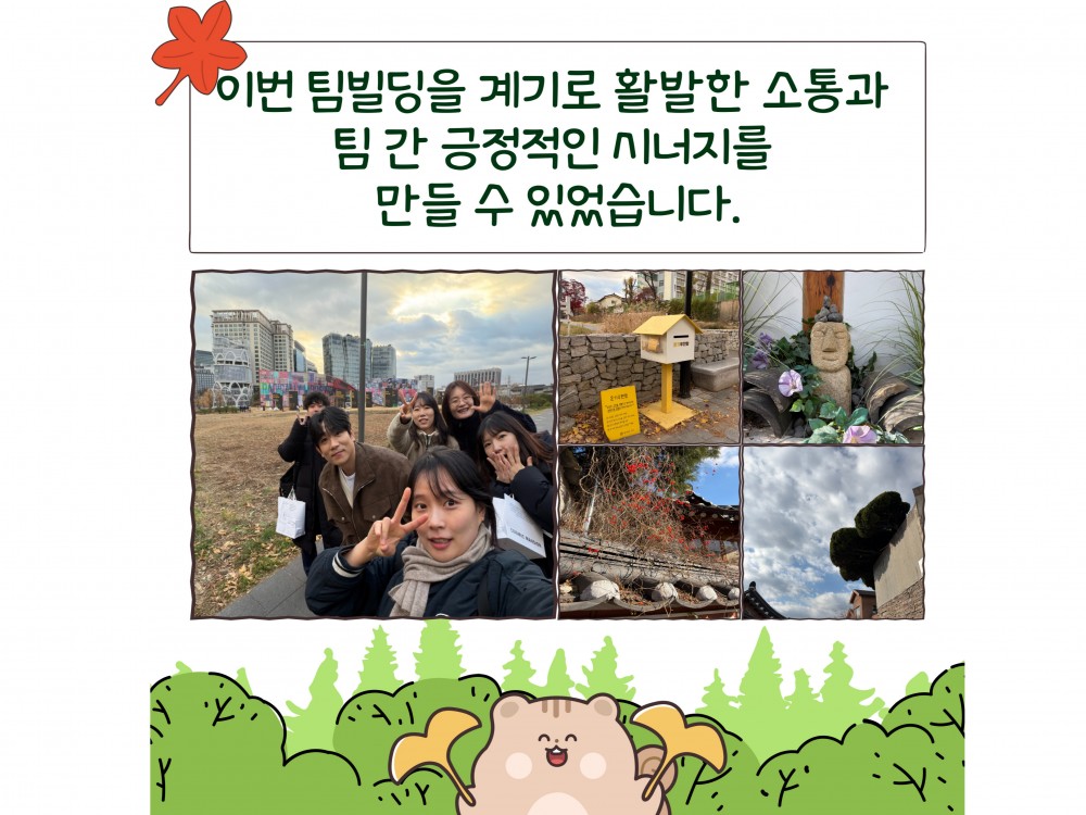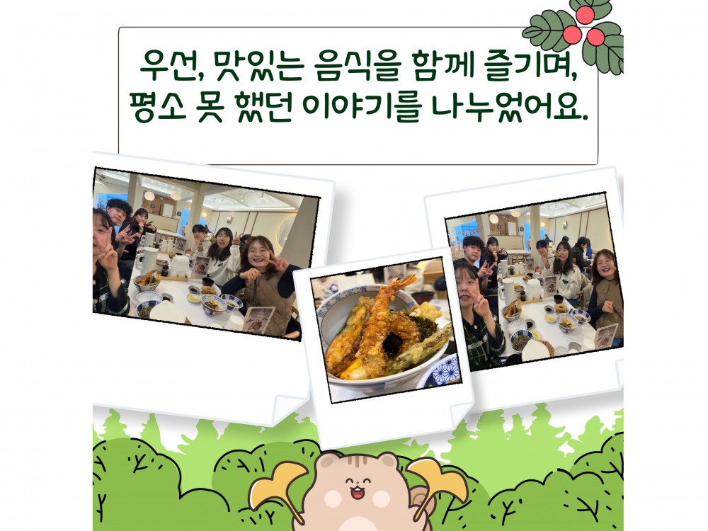 2025 지역밀착과 팀빌딩 페이지 정보 작성자 경영지원팀 작성일25-11-26 22:48 조회566회 댓글0건 관련링크 이전글 다음글 목록 본문 * 이 디자인은 미리캔버스에서 작업되었습니다.(https://www.miricanvas.com)* 글꼴 출처 : https://bit.ly/4aRZ60P#크리스마스 #붕세권 #연말 댓글목록 등록된 댓글이 없습니다. 이전글 다음글 목록
